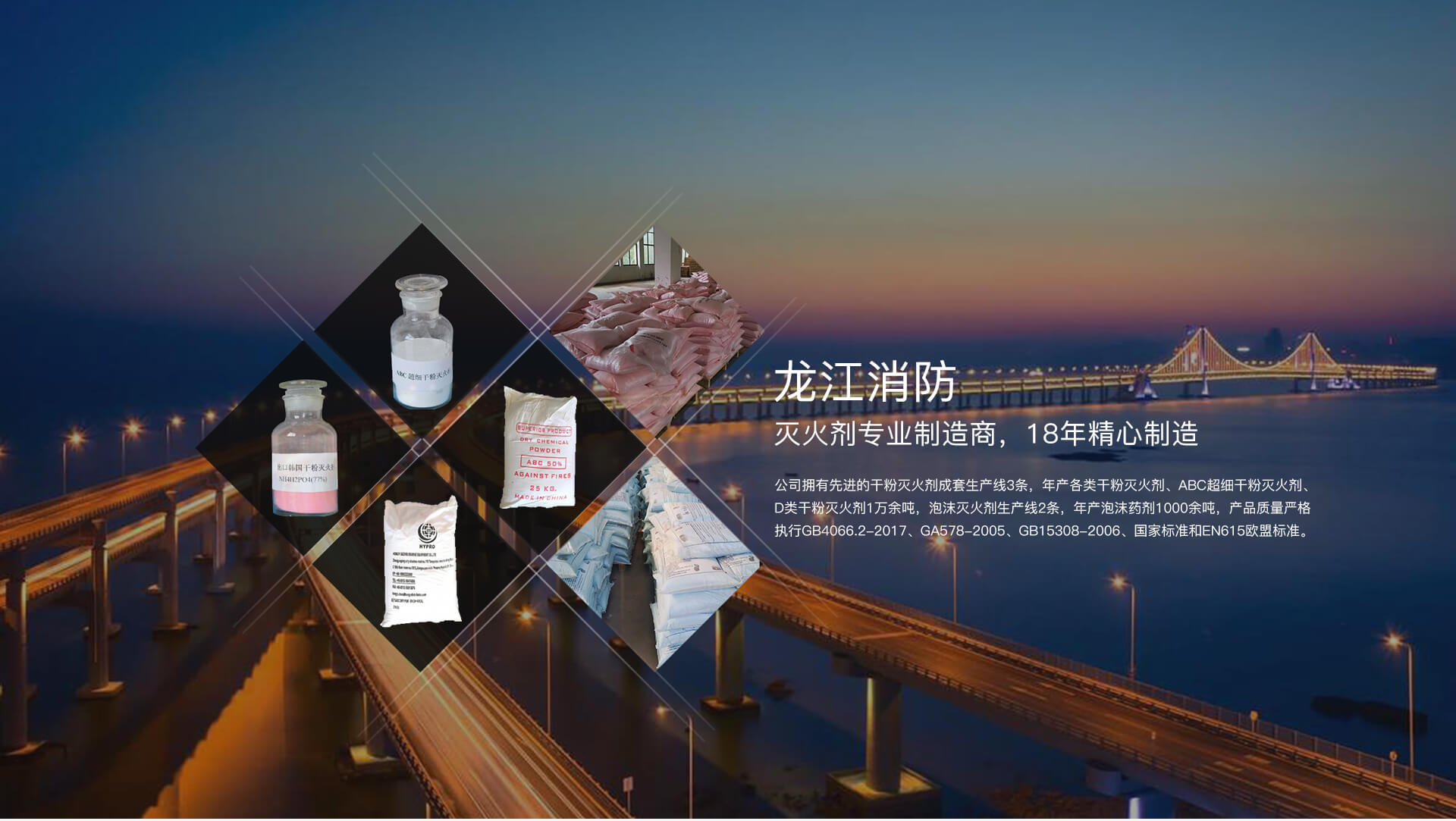 生產各種規格的ABC干粉滅火劑、ABC超細干粉滅火劑、BC干粉滅火劑、抗溶性滅火劑、D類滅火劑、D類滅火器、車載滅火器。